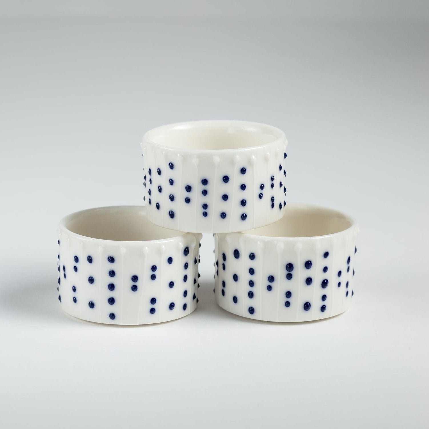 All pieces are handmade with precision, from throwing, firing, glazing, to the finalised handstamped mark. The smooth porcelain combined with the braille inspired dotted surface offers a grounding touch.